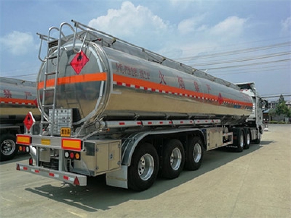 严格按照**公告外形及罐体尺寸生产,罐体体容积38方、40立方、42方、43方、46方、50方,单仓结构,采用5083型优质铝合金材质制作,筒体6mm,封头6.3mm厚,防浪板5mm厚,7块防浪海底阀,两个欧标罐口,两个进料口,罐顶围板内铺防滑钢网,罐尾左右各一个DN80自流阀带保护箱,罐体中段骨架上一个自流阀带保护箱(能与牵引头快速连接),后爬梯,两根输油管,两个大灭火器,其厂内标配。油漆为铝合金本色,贴反光带、反光条、尾部标志板、三个大“爆"字,喷运输介质及容积。牵引头可选用东风天龙,福田欧曼、解放、陕汽、重汽豪沃等众多品牌。